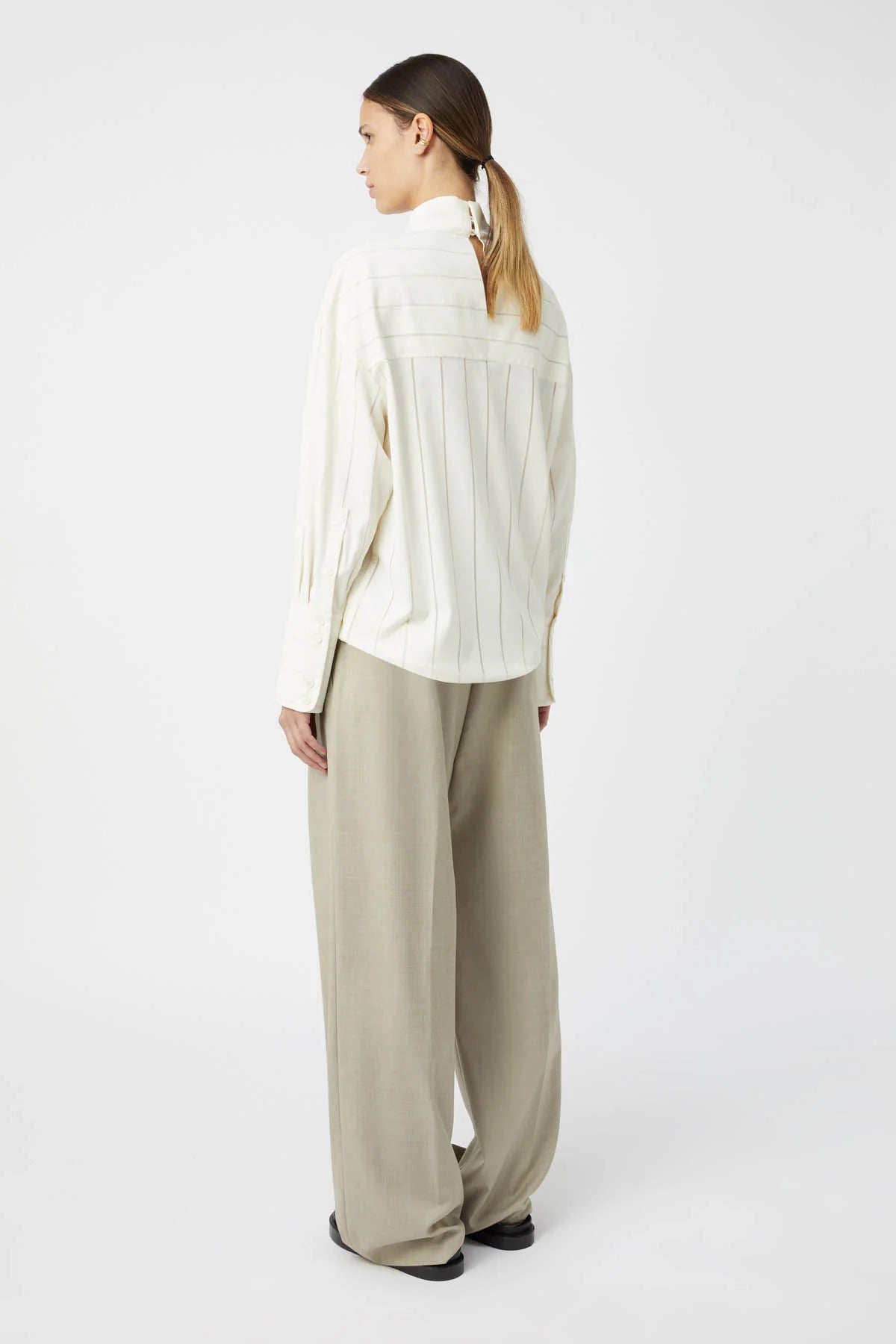 The Neo Shirt is a refined piece, expertly crafted with a stand collar and elongated cuffs for a modern twist on classic tailoring. The front yoke design and C-shaped hem offer a unique silhouette, while the buttoned back neck, adorned with corozo branded buttons, adds a touch of precision to its construction. A versatile wardrobe essential, this shirt seamlessly combines contemporary style with timeless appeal.