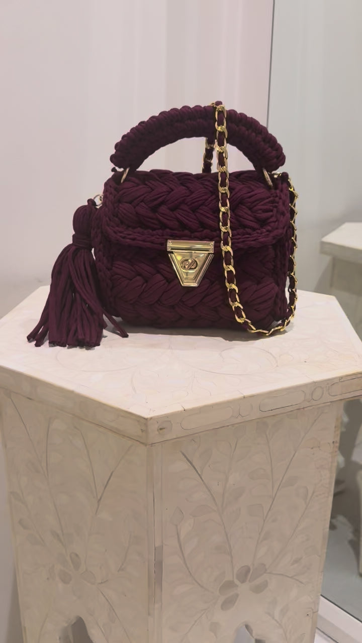 - Handmade crocheted bag made of premium T-shirt combed yarn with cottons.